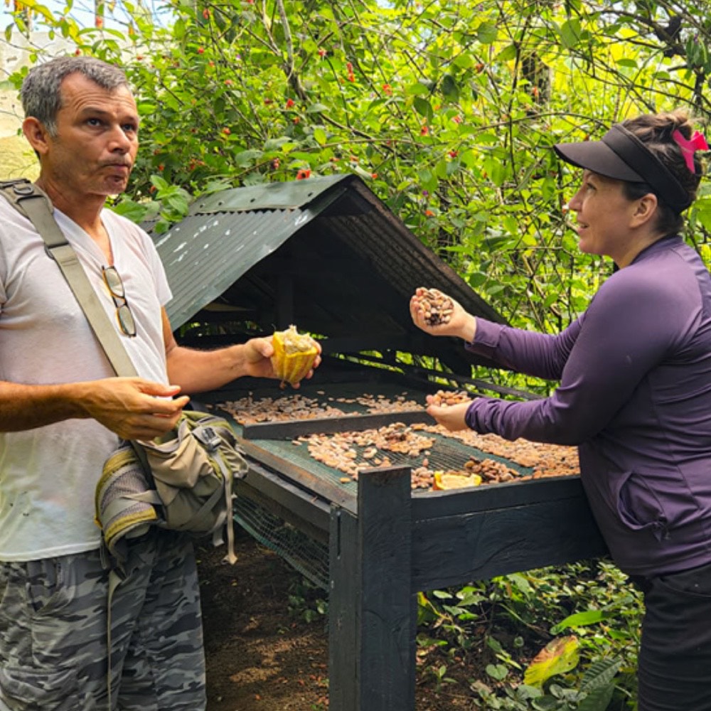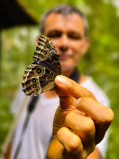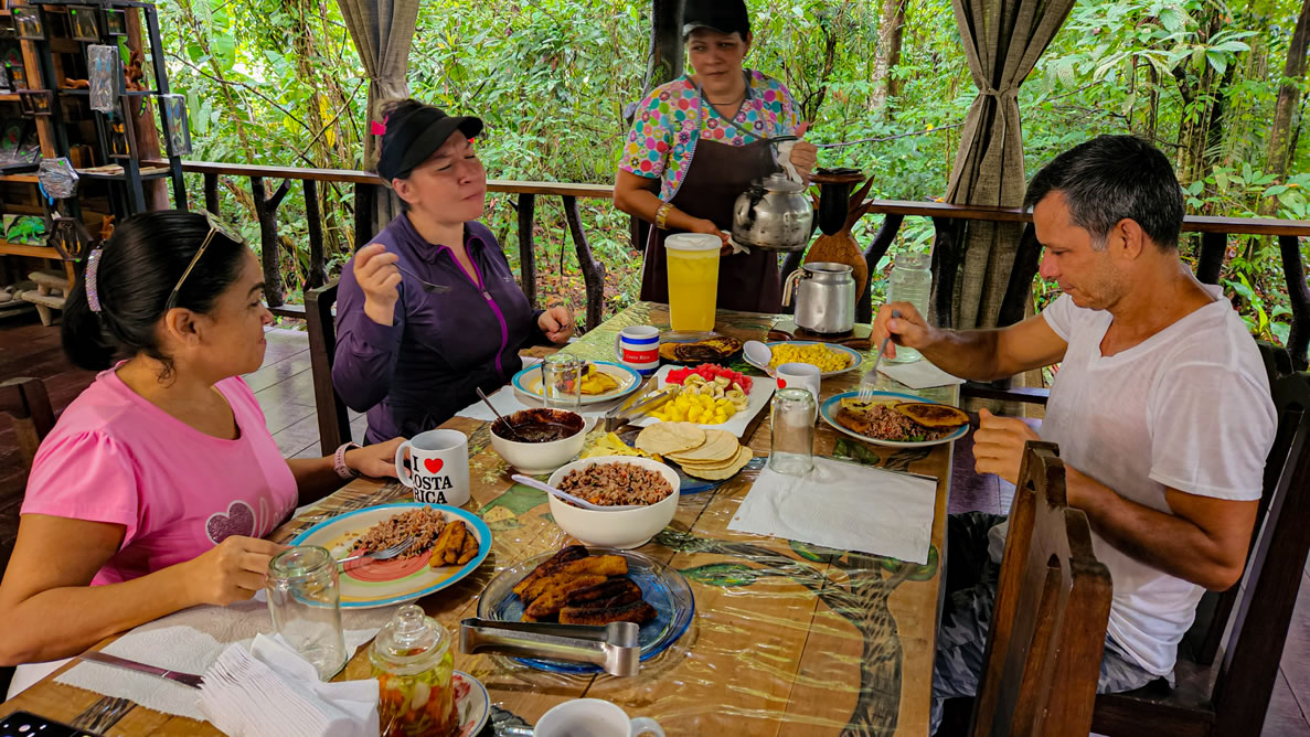 Con uno de nuestros guías experimentados, realizarás una hermosa caminata de 1,5 a 2,5 horas por nuestro bosque de 4 hectáreas. A lo largo del camino, te mostraremos todo tipo de especies de animales y plantas. Gracias a nuestros años de experiencia cuidando el bosque, sabemos dónde encontrar hermosos animales en todo el bosque. Contamos con más de 200 especies de aves que viven en nuestro bosque, como tangaras, mieleros, colibríes, loros, guacamayas, arassaris y el saltarín de cuello blanco bailarín. Además de muchas aves hermosas, también podemos avistar perezosos, monos, reptiles y ranas. Te llevaremos a nuestros jardines de mariposas al aire libre. Aquí podrás ver diferentes especies de mariposas y te mostraremos el ciclo de vida de una mariposa, desde el huevo hasta su vuelo. Gracias a nuestros años de experiencia, hemos logrado mantener las condiciones de vida perfectas para todas estas especies. El bosque se ha convertido en un foco de biodiversidad y nuestro objetivo es proteger la naturaleza dentro y fuera de nuestros parámetros. No olvides que no podemos predecir la naturaleza. Por eso no nos ceñimos a horarios fijos. La duración del tour puede depender de las condiciones meteorológicas y de lo que encontremos. Nos encantaría que disfrutaras de la naturaleza un poco más. También puedes terminar el tour con un abundante almuerzo con platos locales caseros.